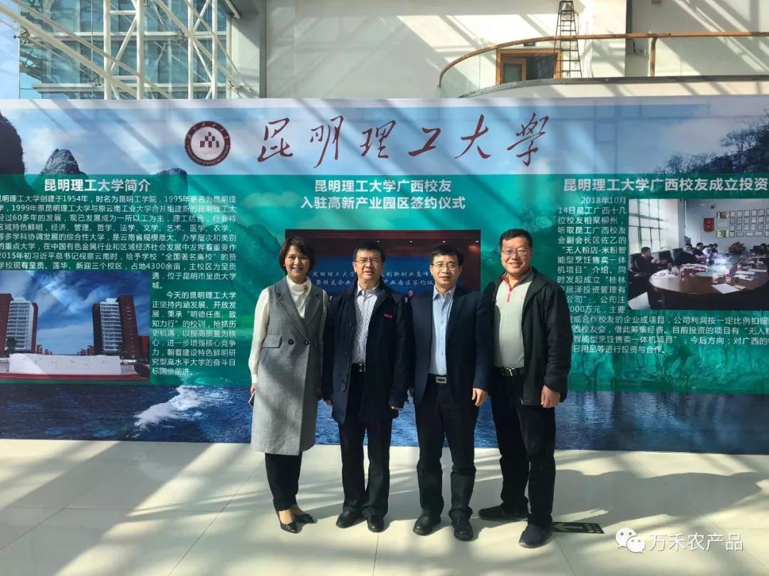 (圖為桂林市政府副市長(zhǎng)樊新鴻、昆明理工大學(xué)副校長(zhǎng)牛治亮、昆明理工大學(xué)工作與社會(huì)合作辦公室副主任杜青山、昆明理工大學(xué)廣西校友會(huì)會(huì)長(zhǎng)崔萌佳在會(huì)場(chǎng)合影)