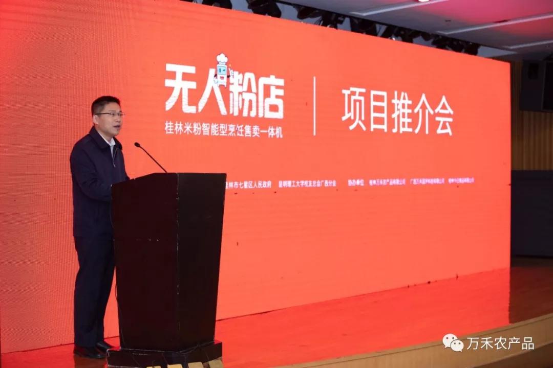 11月29日,“無人粉店—桂林米粉智能型烹飪售賣一體機(jī)項(xiàng)目推介會(huì)”在桂林國(guó)際會(huì)展中心舉行。這一活動(dòng)由桂林國(guó)家高新區(qū)管委會(huì)、桂林市七星區(qū)政府和昆明理工大學(xué)廣西校友會(huì)共同舉辦。桂林市政府副市長(zhǎng)樊新鴻、昆明理工大學(xué)副校長(zhǎng)牛治亮、桂林市政協(xié)副主席鄭毅等領(lǐng)導(dǎo)出席活動(dòng)現(xiàn)場(chǎng)。