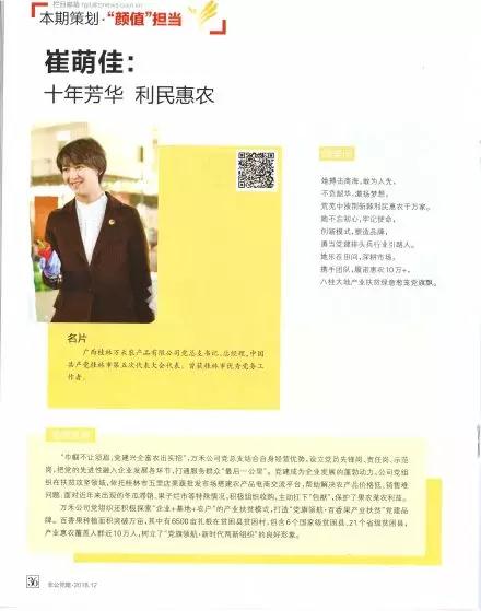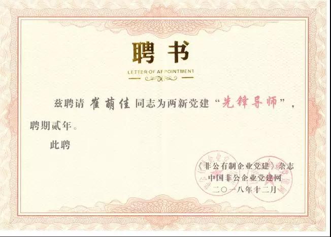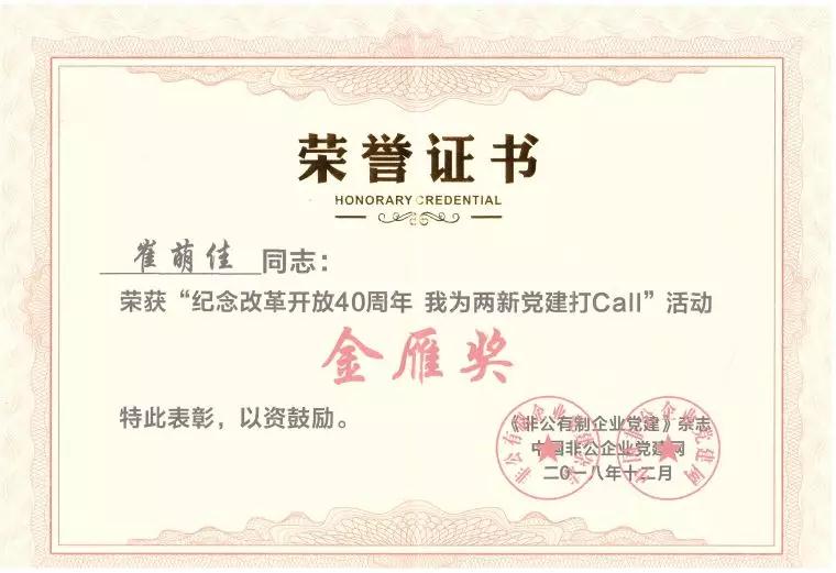 桂林萬禾農(nóng)產(chǎn)品公司黨總支書記崔萌佳被現(xiàn)場授予全國優(yōu)秀兩新組織黨組織書記“金雁獎”殊榮,并被《非公有制企業(yè)黨建》雜志、中國非公企業(yè)黨建網(wǎng)聘任為“先鋒導(dǎo)師”。據(jù)了解,全國共有40位兩新組織黨組織書記獲“金雁獎”榮譽。