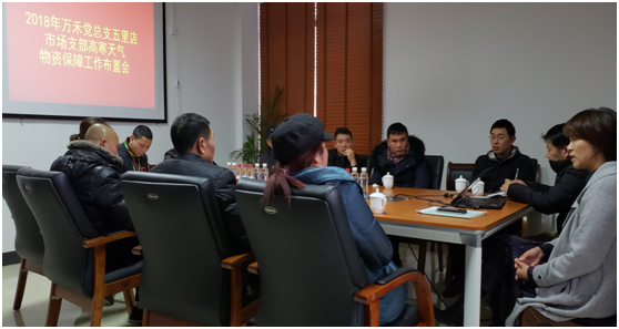 元旦期間,正當(dāng)人們沉浸在節(jié)日的喜慶中時,五里店果蔬批發(fā)市場內(nèi)車水馬龍,交易井然有序,在這一派繁忙景象背后,是萬禾市場管理公司以及五里店市場全體同行的辛勤付出。12月30日下午,萬禾黨總支五里店市場支部召開了“高寒天氣物資保障工作布置會”,會議部署五里店果蔬批發(fā)市場加強市場監(jiān)測和產(chǎn)銷銜接,確保極端高寒天氣下市場果蔬等主要農(nóng)產(chǎn)品的正常供應(yīng)。在這次工作中,黨員同志起到了先鋒模范作用。