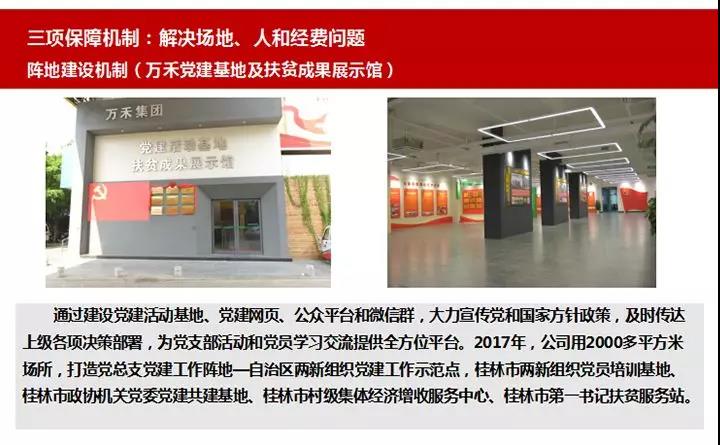 萬禾黨總支部作為桂林市兩新組織黨組織中的一員,在此次培訓(xùn)班上的交流發(fā)言,是桂林市兩新組織黨建工作成果的重要體現(xiàn),是黨建工作的亮點(diǎn)展示,對(duì)于今后做好兩新組織黨建工作起到了積極作用。下一步桂林市將堅(jiān)持貫徹落實(shí)習(xí)近平新時(shí)代中國特色社會(huì)主義思想和黨的十九大精神,把兩新組織特色黨建工作延伸拓展到更多企業(yè)、行業(yè)和街區(qū)中,更好地發(fā)揮黨組織作用,打造獨(dú)具桂林特色的兩新組織黨建工作名片!