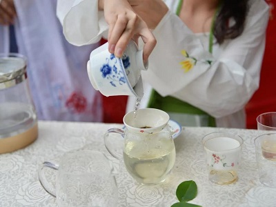 采用傳統(tǒng)工藝制作的正宗桂花茶,“茶為骨,花為香”,茶葉和鮮桂花巧妙融合在一起,茶葉香味融合了桂花的香氣,無論是頭道水還是二、三道泡飲,桂花的香味都久久不散,聞之醒神,飲之健胃。桂花漂浮在茶湯之中,有杯中窺茶、一葉知秋的美好,體驗(yàn)品茶人獨(dú)有的浪漫。