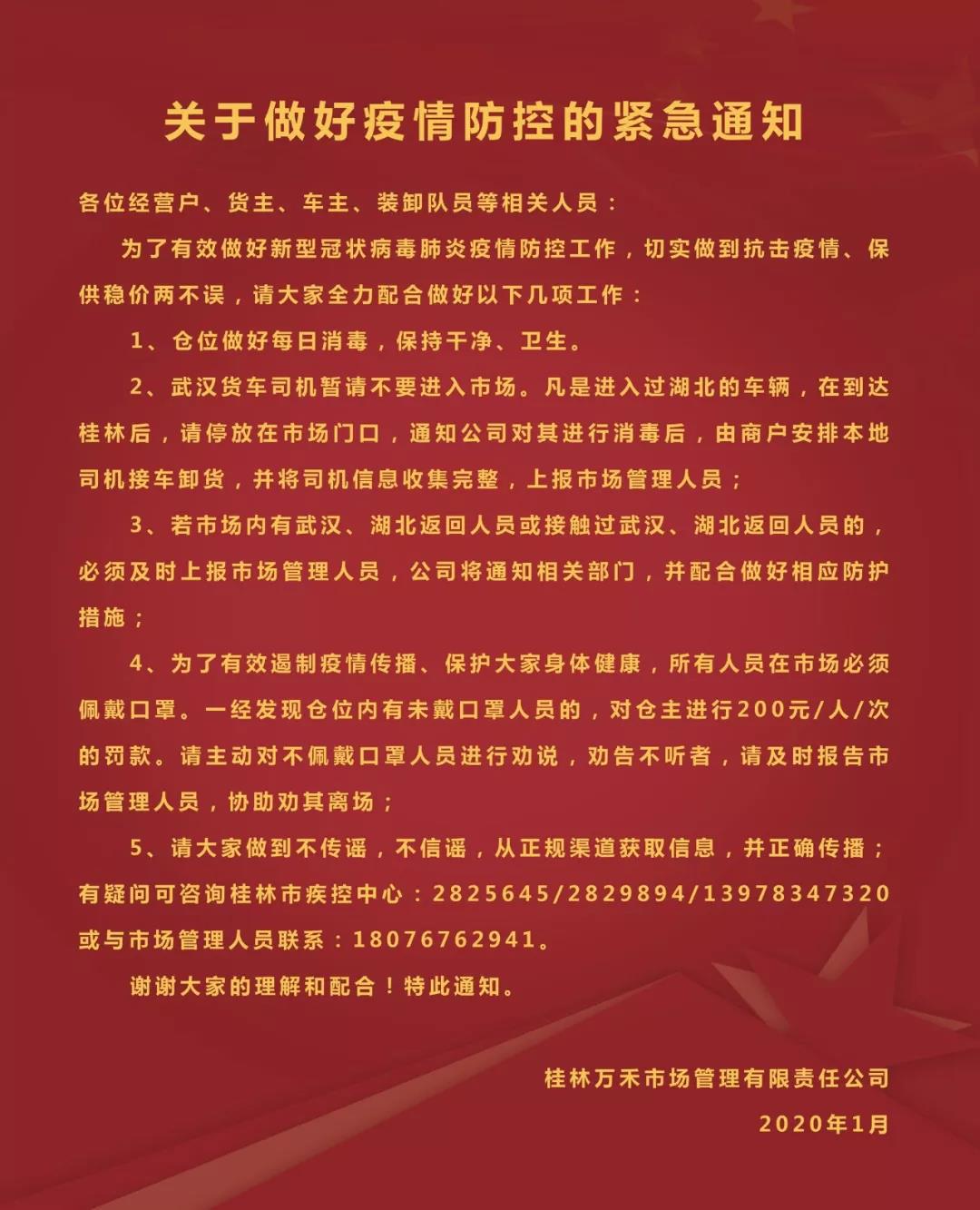 ▲萬禾市場管理有限公司發(fā)布《關(guān)于疫情防控的緊急通知》