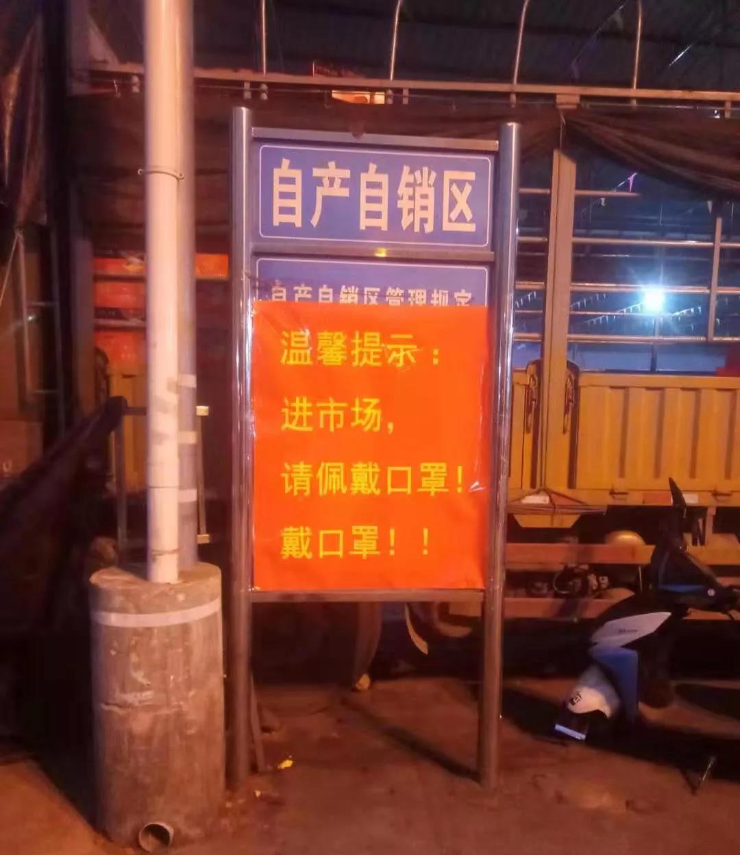 ▲五里店市場隨處可見防疫標(biāo)語