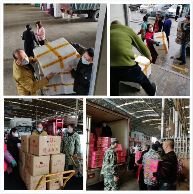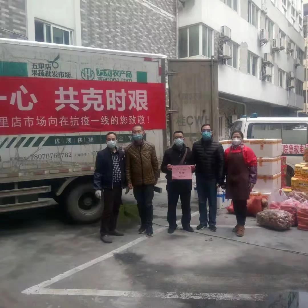 ▲萬禾公司和五里店市場經(jīng)營戶們向一線醫(yī)務(wù)人員捐贈果蔬物資