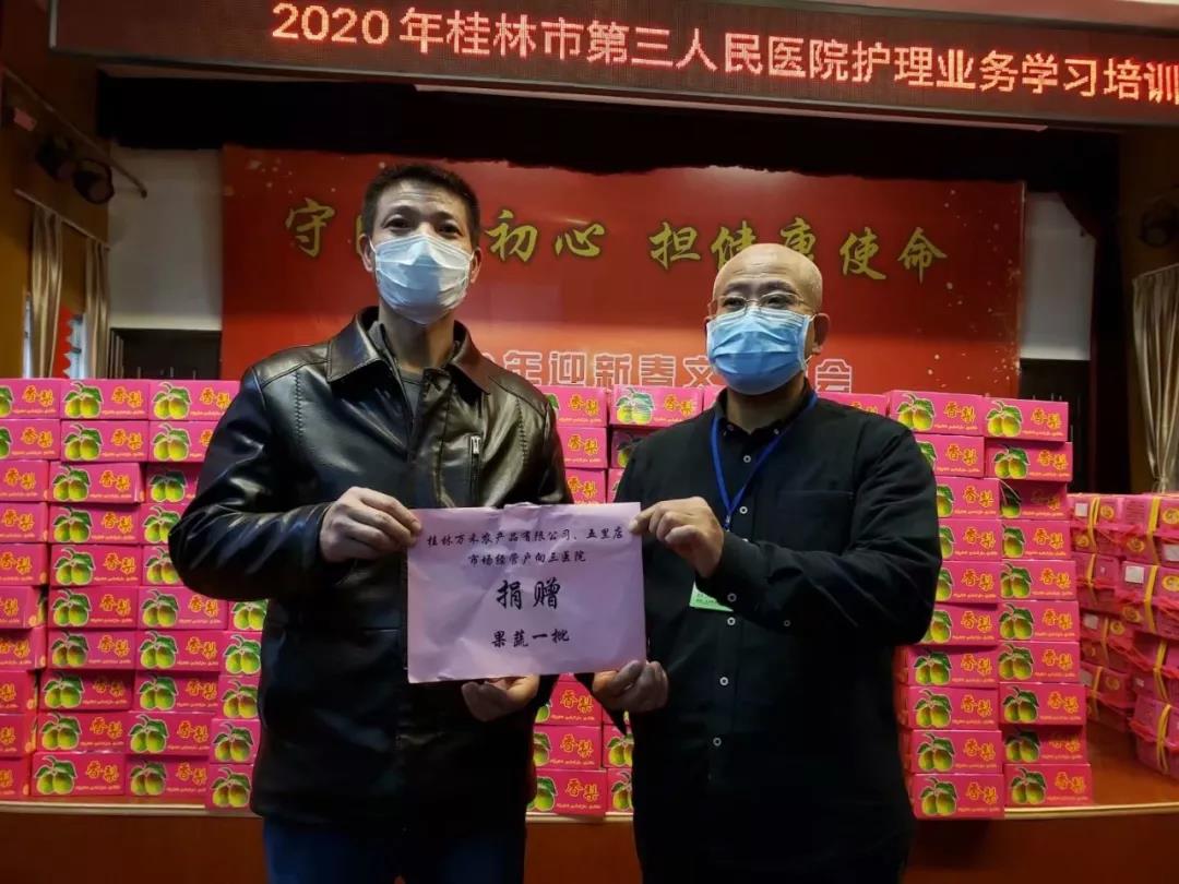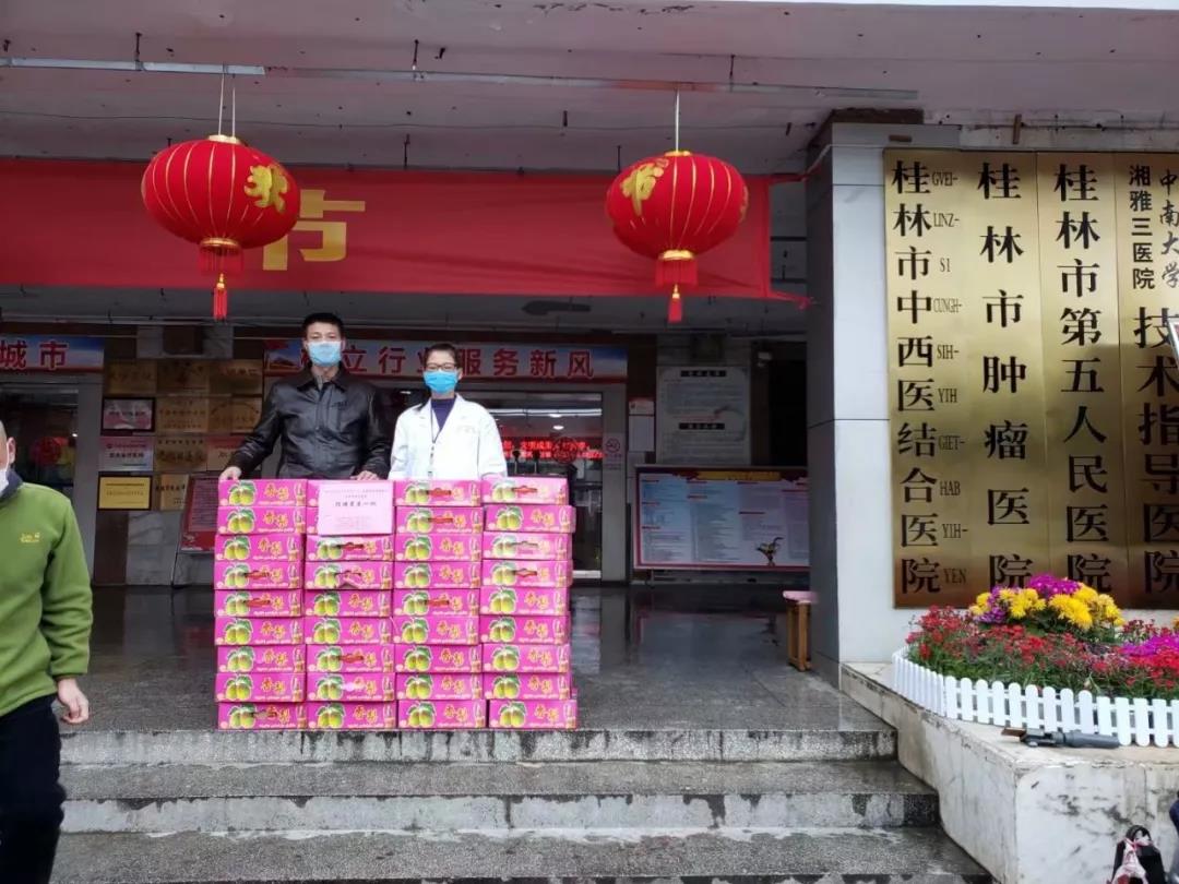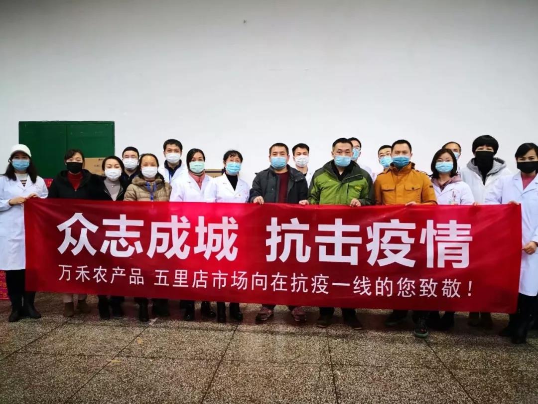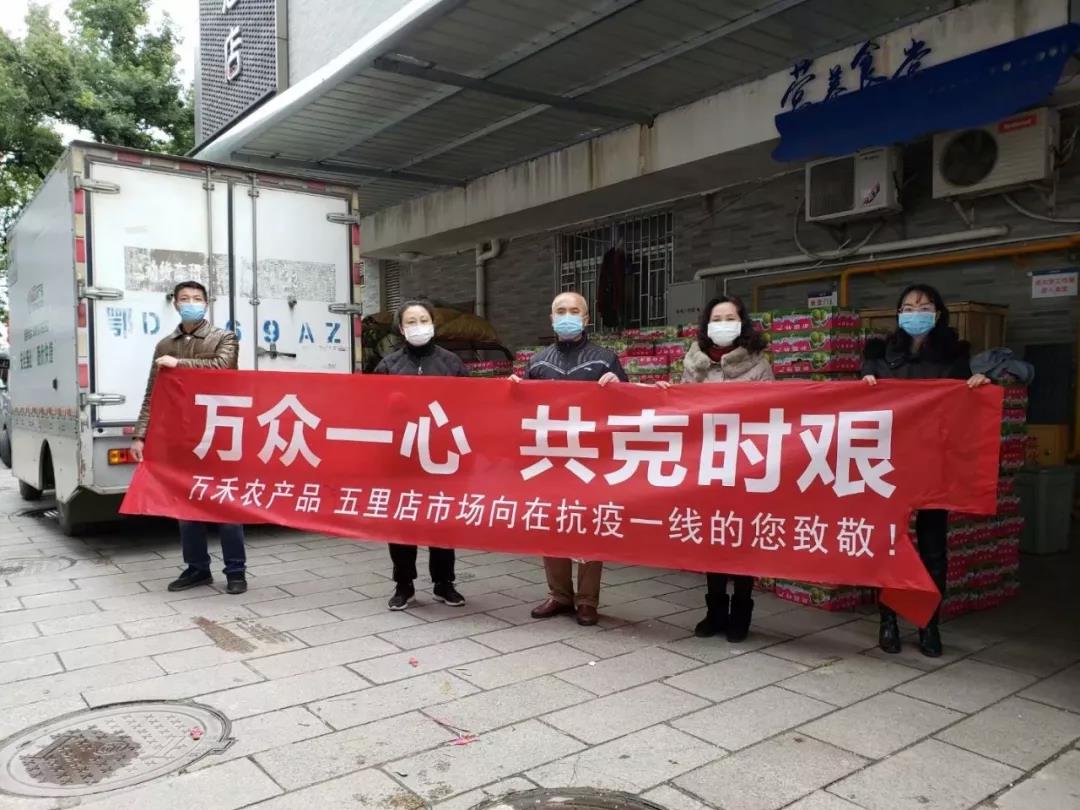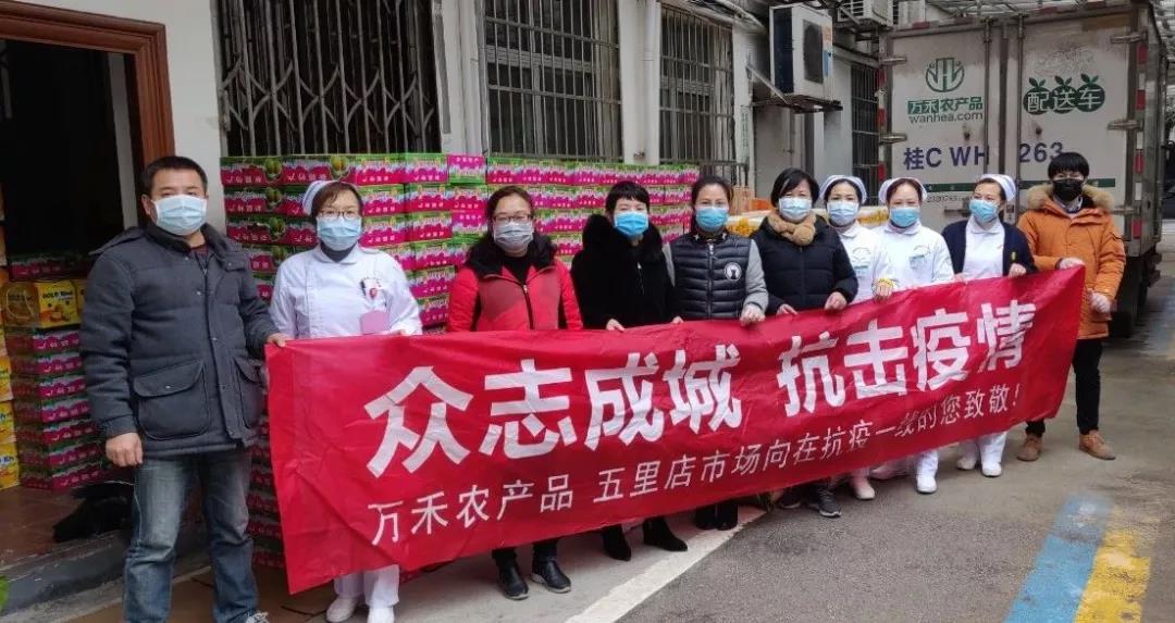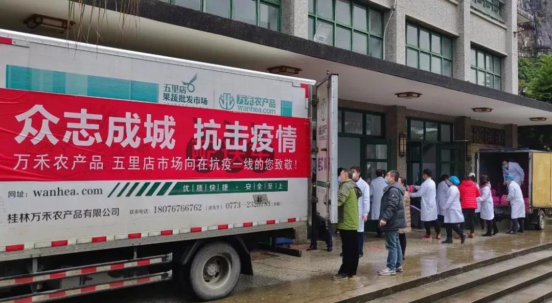 萬禾農(nóng)產(chǎn)品公司以及五里店果蔬批發(fā)市場的經(jīng)營戶們主動擔起“抗疫情、保供應(yīng)、穩(wěn)物價”責任的同時,心系抗戰(zhàn)在一線的醫(yī)務(wù)和警務(wù)人員,1月30日向七星區(qū)衛(wèi)建局和公安分局共捐贈了4000多只口罩,又自發(fā)組織向廣西桂林南溪山醫(yī)院、桂林市第三人民醫(yī)院、桂林市人民醫(yī)院、桂林市第二人民醫(yī)院、桂林市婦女兒童醫(yī)院、桂林市中醫(yī)院、桂林市中西醫(yī)結(jié)合醫(yī)院、桂林市疾控中心、桂林市公安局等奮斗在抗擊疫情一線的醫(yī)務(wù)和警務(wù)人員捐贈青棗、龍眼、香梨、油麥菜、黃瓜、大白菜、蘿卜、毛節(jié)瓜、生菜、紅蘿卜、辣椒、土豆、洋蔥等水果、蔬菜30多噸。