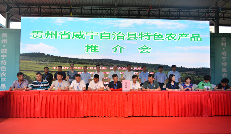 簽約儀式上,來(lái)自威寧和桂林的共24家農(nóng)產(chǎn)企業(yè)進(jìn)行現(xiàn)場(chǎng)簽約。