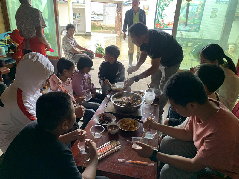 在戶撒學(xué)員們深入貧困村與當(dāng)?shù)匦∨笥鸦ソY(jié)對(duì)子,給小朋友們帶了自己準(zhǔn)備好的小禮物,相互約定好好學(xué)習(xí);家長們也熱情的邀請(qǐng)學(xué)員們留下來吃午飯,品嘗到了最正宗的戶撒美食。