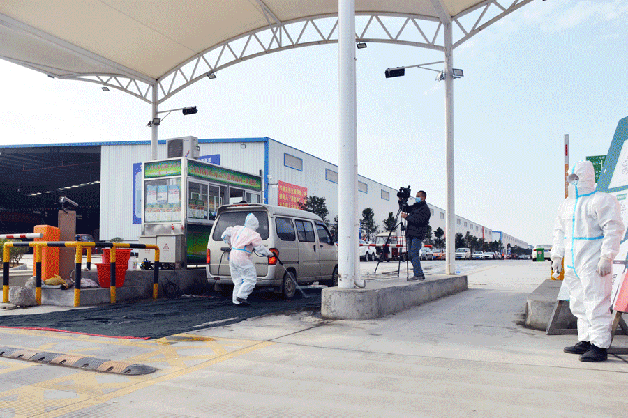 ▲對(duì)進(jìn)出市場(chǎng)車輛和市場(chǎng)倉(cāng)位進(jìn)行病毒消殺