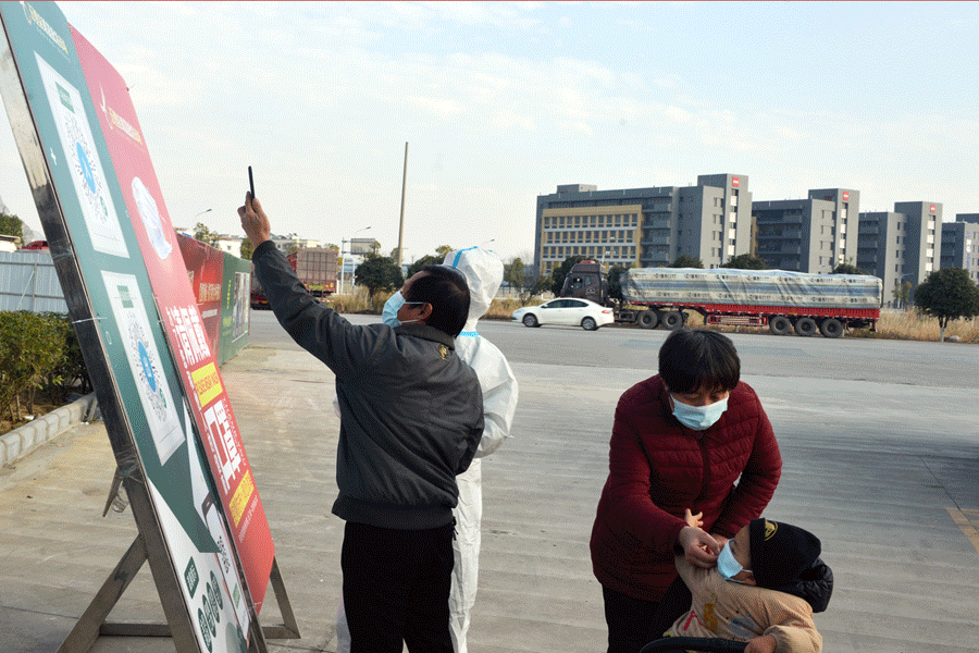 ▲進(jìn)出市場(chǎng)人員要求戴口罩并出示健康碼