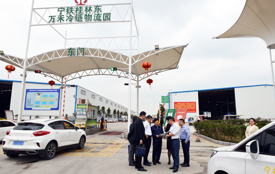 3月18日下午,南寧鐵路局副局長(zhǎng)楊燁,廣西寧鐵物資工業(yè)有限公司黨委書記、董事長(zhǎng)石小東,廣西寧鐵物資工業(yè)有限公司桂林分公司總經(jīng)理陸泉州,南寧鐵路局開發(fā)處處長(zhǎng)鄧順秋等赴寧鐵桂林東萬禾冷鏈物流園,考察寧鐵桂林東萬禾冷鏈物流園三期功能配套建設(shè)相關(guān)工作,桂林萬禾農(nóng)產(chǎn)品有限公司黨總支書記、總經(jīng)理崔萌佳隨行講解。