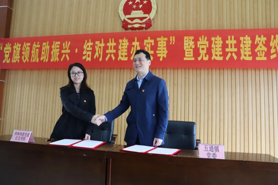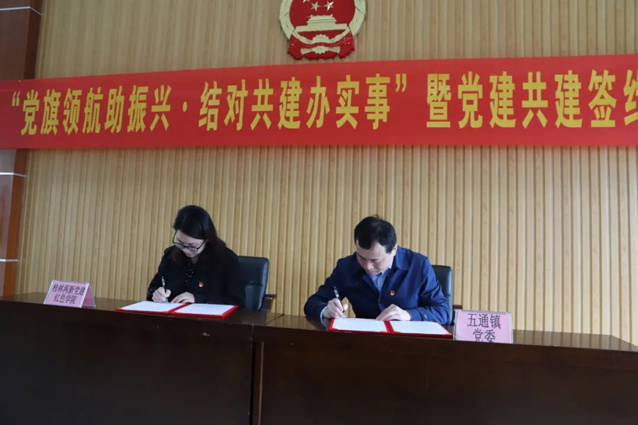 儀式上,桂林兩新黨建紅色學(xué)院與五通鎮(zhèn)黨委簽訂黨建共建協(xié)議。協(xié)議規(guī)定:協(xié)議雙方將充分發(fā)揮黨建工作優(yōu)勢,定期交流黨建工作經(jīng)驗,不斷提高基層黨建工作水平,形成院鎮(zhèn)共通、村企互聯(lián)、協(xié)同配合、運轉(zhuǎn)有序的黨建工作模式,積極助力產(chǎn)業(yè)發(fā)展,鍛造一支高素質(zhì)的人才隊伍。
