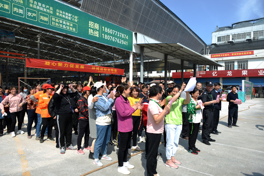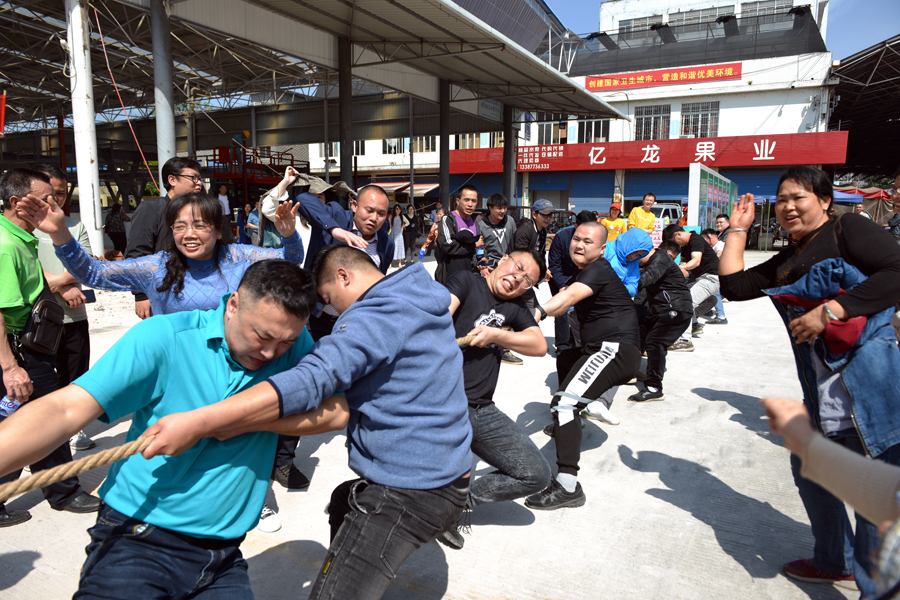 表彰大會(huì)結(jié)束后,參會(huì)人員移步到市場(chǎng)原蔬菜一區(qū)大棚前,一場(chǎng)火熱十足的拔河比賽拉開了序幕。