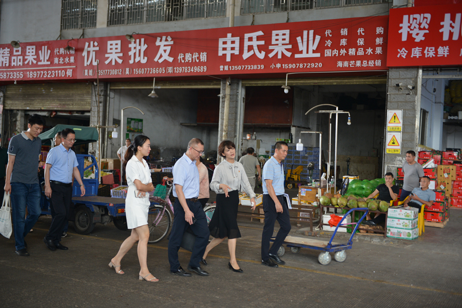 調(diào)研當(dāng)天上午,國家農(nóng)業(yè)農(nóng)村部調(diào)研組一行在自治區(qū)、桂林市及七星區(qū)相關(guān)部門人員陪同下首先步行調(diào)研了寧鐵桂林東萬禾冷鏈物流園園區(qū),崔書記陪同講解。
