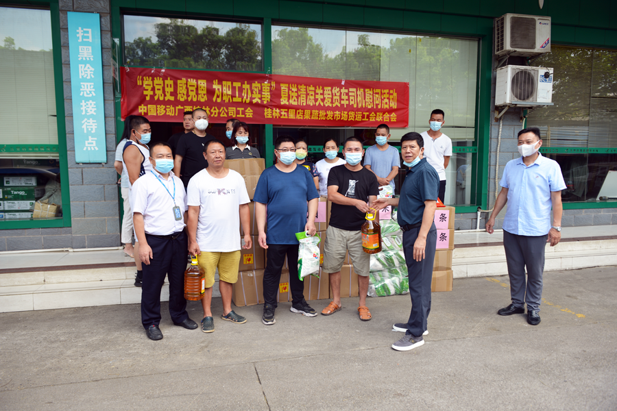 今年8月,由桂林市總工會(huì)開(kāi)展“夏日送清涼”慰問(wèn)活動(dòng),為五里店果蔬批發(fā)市場(chǎng)工會(huì)聯(lián)合會(huì)會(huì)員和貨車(chē)司機(jī)送來(lái)綠豆等防暑、防高溫暖心物品。