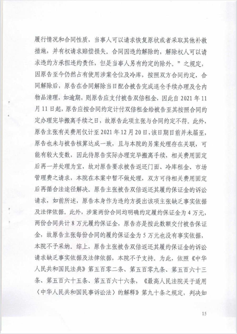另外,黃某某也對(duì)市場(chǎng)公司提起訴訟,提出返還租金、雙倍返還履約保證金等諸多不合理訴求,經(jīng)過(guò)法院審理認(rèn)定,黃某某提出的訴訟請(qǐng)求沒(méi)有事實(shí)根據(jù)和法律依據(jù),予以駁回。