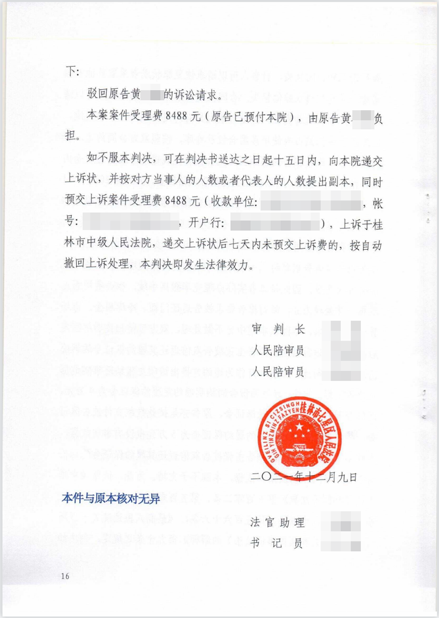 法院駁回黃某某提起的訴訟請(qǐng)求