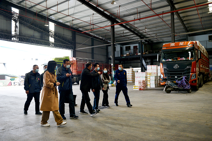 2022年虎年新春臨近之際,市商務局呂佳軍副局長陪同自治區(qū)商務廳建設處曹柯笛處長一行,及七星區(qū)常務副區(qū)長文杰組織安全檢查小組來桂林五里店果蔬批發(fā)市場和寧鐵桂林東萬禾冷鏈物流園開展一季度開門紅、疫情防控、安全生產(chǎn)、市場保供等綜合調(diào)研和安全生產(chǎn)檢查,并作出工作部署,確保節(jié)日期間各經(jīng)營場所安全穩(wěn)定運營,農(nóng)產(chǎn)品供應達到“六穩(wěn)”“六?!币?。