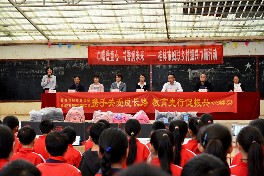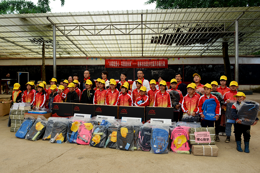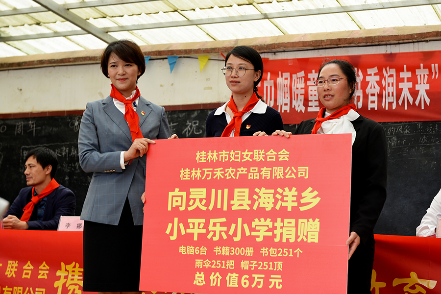 “攜手關(guān)愛成長路 教育先行促振興”愛心助學(xué)活動(dòng)在靈川縣海洋鄉(xiāng)小平樂小學(xué)舉行。活動(dòng)中,萬禾集團(tuán)向小平樂小學(xué)捐贈(zèng)教學(xué)電腦、書籍、書包、雨傘和帽子等物資,總價(jià)值6萬元人民幣。