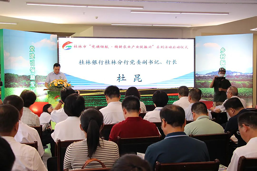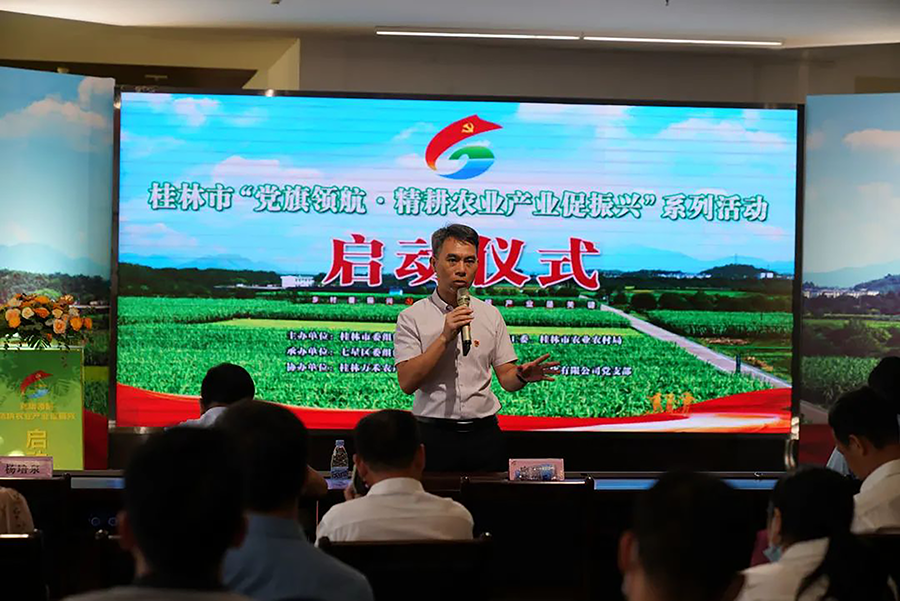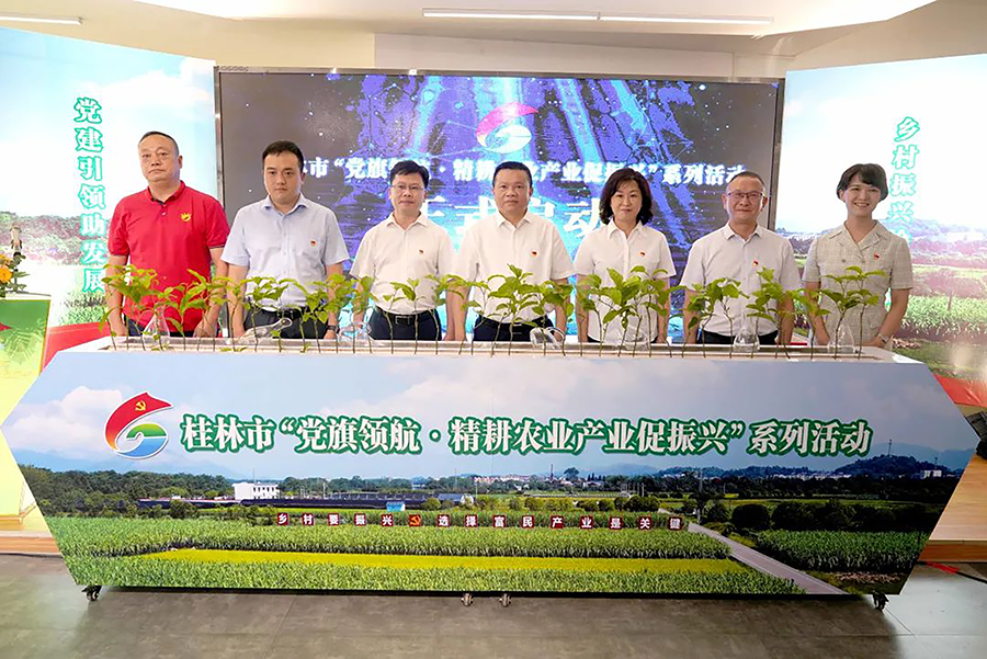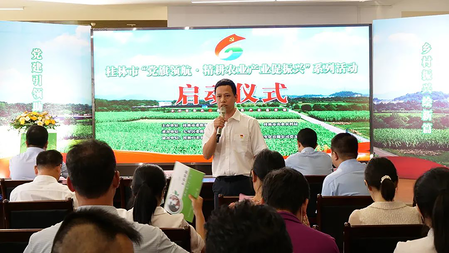 ▲領(lǐng)導啟動桂林市“黨旗領(lǐng)航·精耕農(nóng)業(yè)產(chǎn)業(yè)促振興” 系列活動