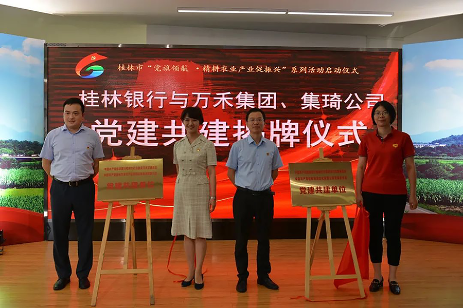 ▲桂林銀行與萬禾集團、集琦公司進行黨建共建揭牌