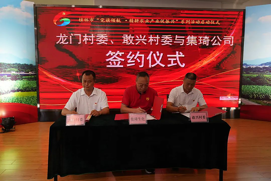 儀式現(xiàn)場,桂林銀行桂林分行黨委副書記、行長杜昆介紹了金融服務鄉(xiāng)村振興戰(zhàn)略的相關(guān)政策,并與萬禾集團黨總支、集琦黨支部進行共建揭牌。萬禾集團、集琦公司與龍門村、敢興村簽訂合作協(xié)議。這是堅持黨建引領(lǐng)、深耕農(nóng)業(yè)產(chǎn)業(yè)、加強銀企對接,助力鄉(xiāng)村振興的有效舉措,充分展現(xiàn)農(nóng)業(yè)龍頭企業(yè)的擔當,必將對桂林市農(nóng)業(yè)產(chǎn)業(yè)跨越發(fā)展起到極大的推動作用。