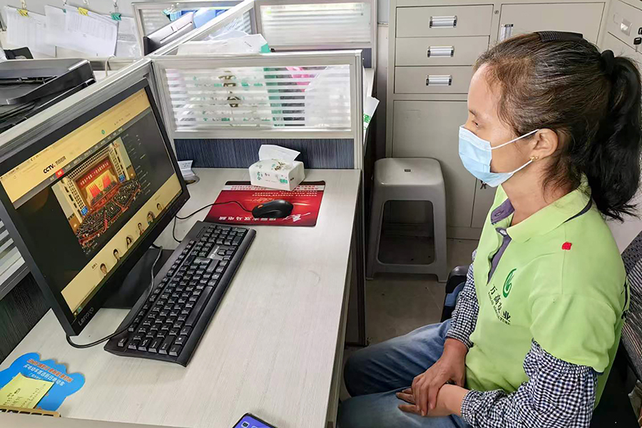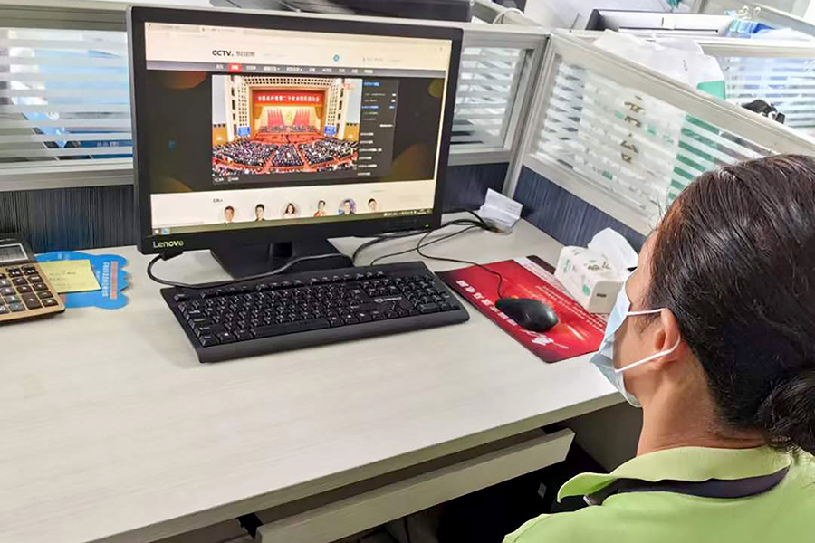 ▲萬禾集團(tuán)黨總支組織人員觀看二十大開幕會(huì)