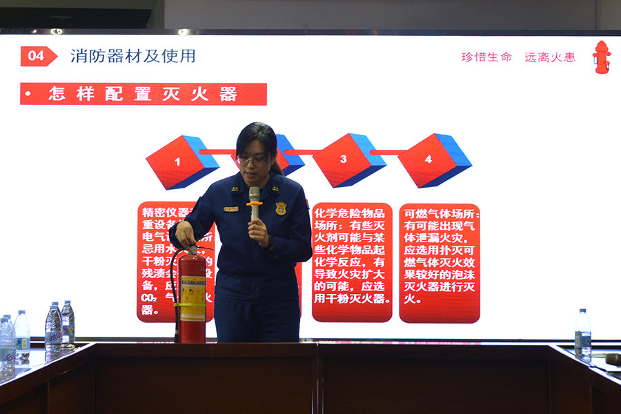 會后,還邀請到七星消防隊進(jìn)行了消防安全知識培訓(xùn)和演練,消防隊員通過詳細(xì)講解干粉滅火器的配置和使用方法、初期火災(zāi)的撲救方法以及火場自救逃生等相關(guān)知識,并現(xiàn)場演練火場逃生技能,有效提高了廣大黨員干部的消防安全意識。