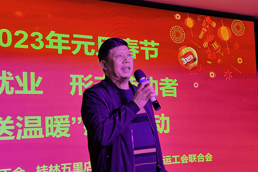桂林市七星區(qū)總工會(huì)常務(wù)副主席陳國峰為貨運(yùn)司機(jī)帶來了暖心的春節(jié)禮盒、米等慰問品,同時(shí),作了題為《深入學(xué)習(xí)貫徹黨的二十大精神,努力在新的偉大征程上開創(chuàng)新就業(yè)形態(tài)勞動(dòng)者工會(huì)工作新局面——在貨車司機(jī)培訓(xùn)班上的輔導(dǎo)報(bào)告》的宣講。