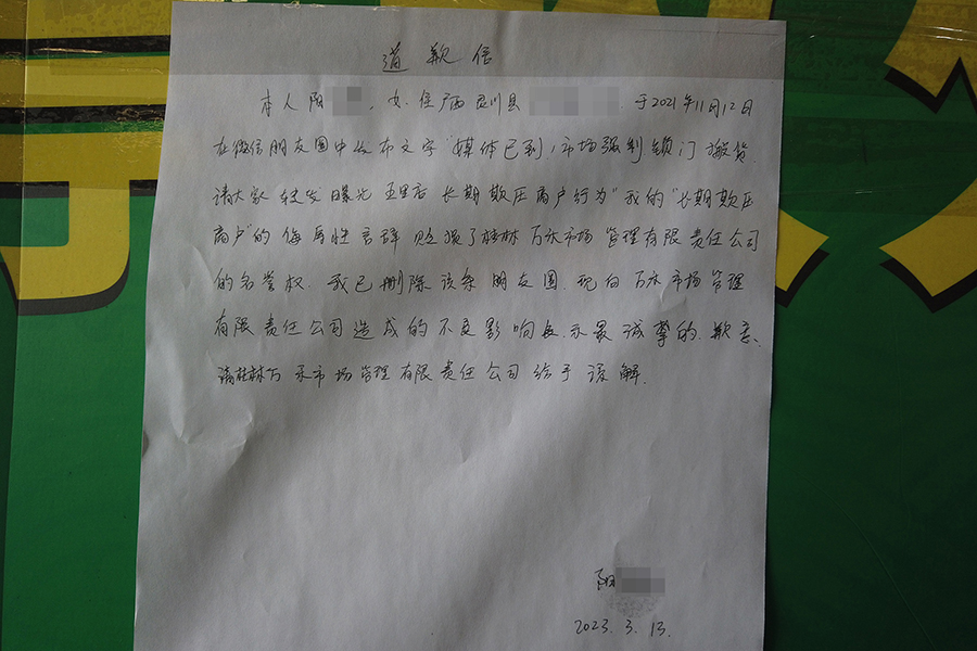 ▲陽(yáng)某某張貼書面賠禮道歉申明
