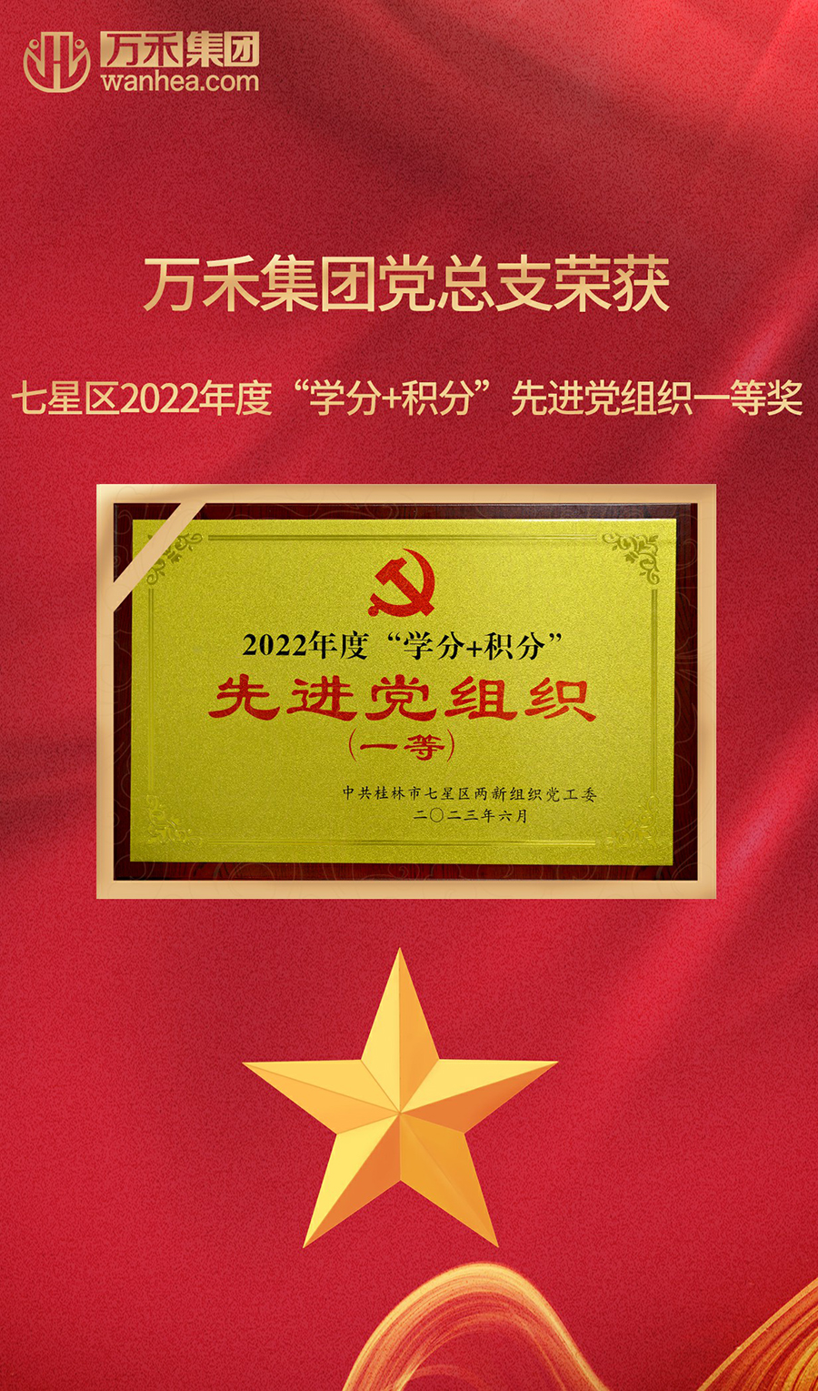 6月28日,在七星區(qū)兩新組織黨工委開展的“不忘初心跟黨走 昂揚奮進(jìn)新征程”迎“七一”活動中,萬禾集團(tuán)黨總支獲授2022年度桂林市兩新組織黨建工作示范點榮譽稱號和七星區(qū)兩新組織黨工委2022年度“學(xué)分+積分”一等獎!