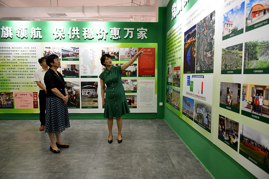 王鳳玲一行先后考察了萬禾集團(tuán)旗下桂林東站冷鏈物流園、五里店果蔬批發(fā)市場、黨建活動基地等項目建設(shè)及運營情況。王鳳玲對萬禾集團(tuán)在農(nóng)產(chǎn)品交易市場運營管理、冷鏈物流中心建設(shè)、城市共同配送、特色農(nóng)產(chǎn)品貿(mào)易等產(chǎn)業(yè)高質(zhì)量發(fā)展給予肯定,向崔萌佳及相關(guān)業(yè)務(wù)板塊負(fù)責(zé)人介紹了資源縣農(nóng)副產(chǎn)品優(yōu)勢和招商政策等,并就資源縣粵桂協(xié)作農(nóng)副產(chǎn)品冷鏈倉儲物流產(chǎn)業(yè)園、城北市場等相關(guān)投資項目推薦招商。王鳳玲說,近年來,資源縣聚焦“強(qiáng)產(chǎn)業(yè)、調(diào)結(jié)構(gòu)、促發(fā)展”,積極推動優(yōu)質(zhì)農(nóng)特產(chǎn)品發(fā)展,著力實施農(nóng)特產(chǎn)品質(zhì)量提升和品牌建設(shè)工程,在農(nóng)產(chǎn)品規(guī)模化、標(biāo)準(zhǔn)化、品牌化方面取得了可喜成績。期望能與萬禾集團(tuán)加大合作力度,實現(xiàn)雙方在農(nóng)業(yè)產(chǎn)業(yè)領(lǐng)域互利互贏。