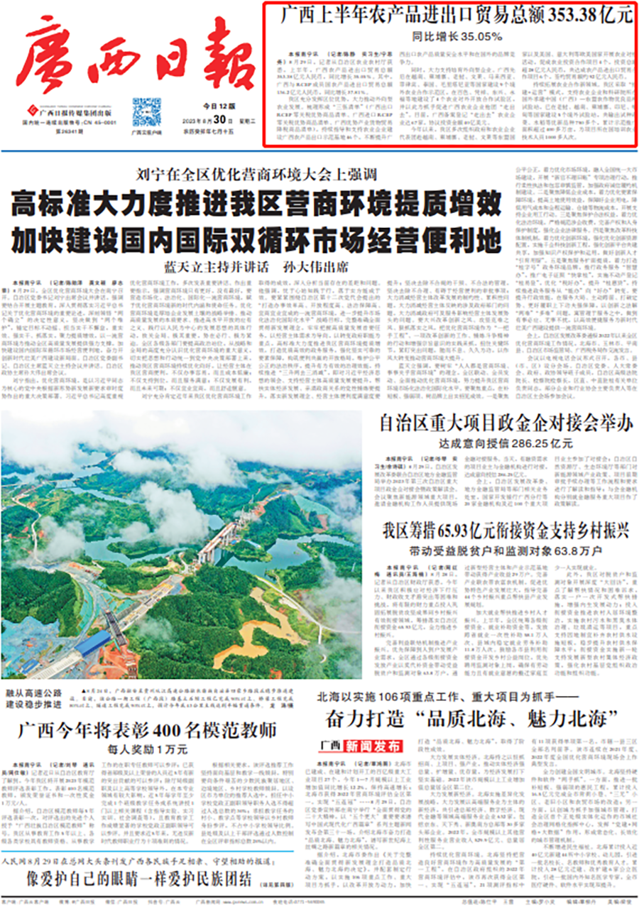 8月29日,記者從自治區(qū)農(nóng)業(yè)農(nóng)村廳獲悉,上半年,廣西農(nóng)產(chǎn)品進出口貿(mào)易總額353.38億元人民幣,同比增長35.05%。其中,廣西與RCEP成員國農(nóng)產(chǎn)品進出口貿(mào)易總額136.2億元人民幣,同比增長37.81%。