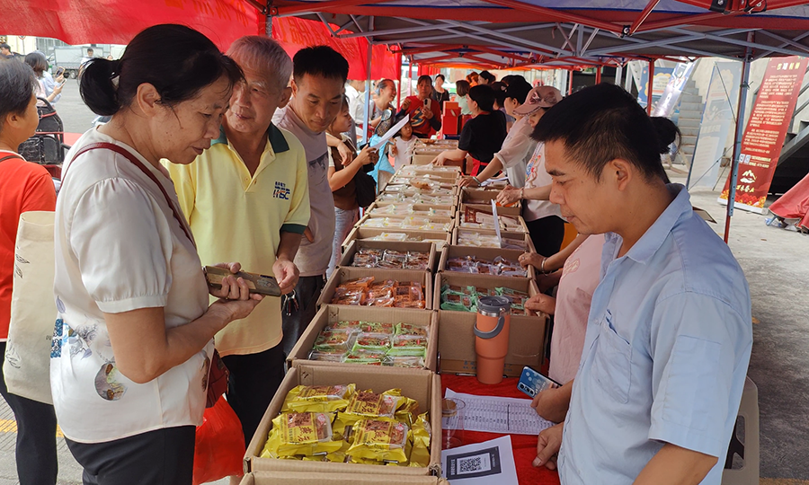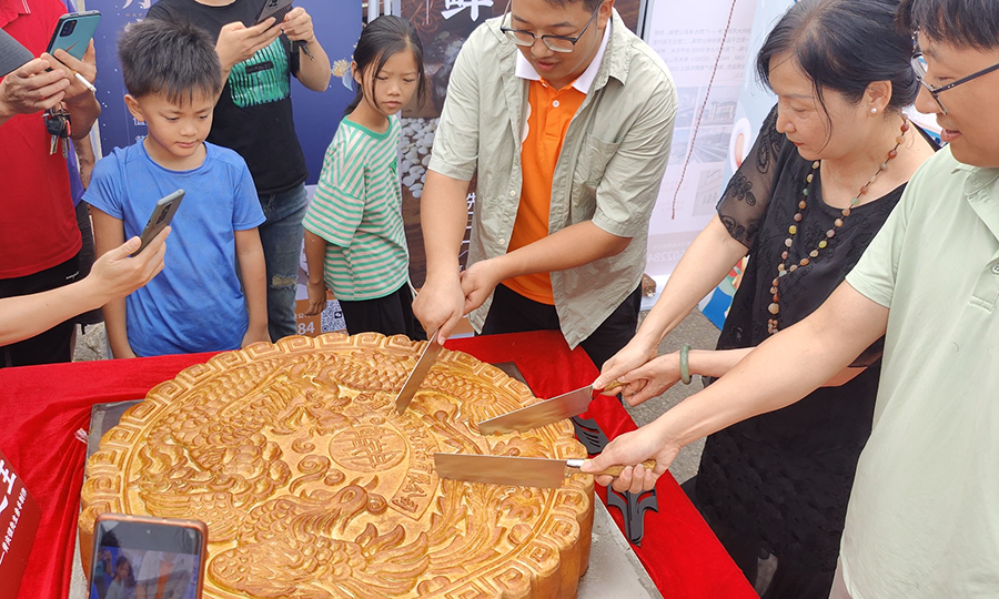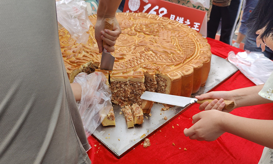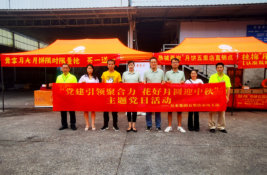 活動(dòng)現(xiàn)場(chǎng),萬禾集團(tuán)五里店市場(chǎng)支部聯(lián)合黃家月等月餅品牌商組織開展“168斤月餅王”嘗鮮為主題的系列活動(dòng),支部黨員干部、市場(chǎng)經(jīng)營戶代表以及市場(chǎng)各職能部門員工參加活動(dòng),與前來桂林五里店果蔬批發(fā)市場(chǎng)購物的市民同慶中秋國慶佳節(jié)來臨,共話團(tuán)圓美好。