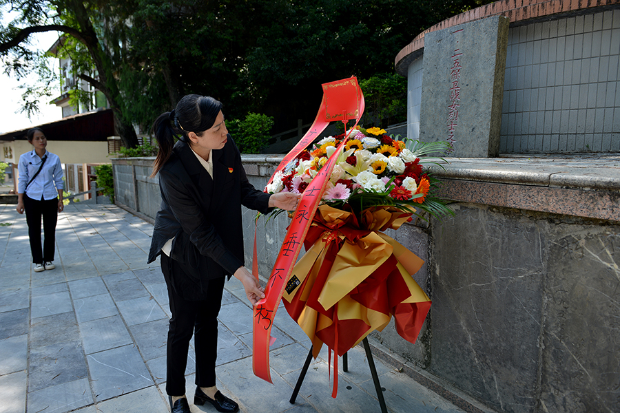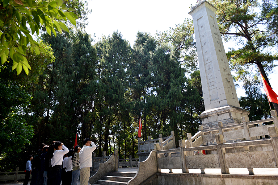 參加活動的全體黨員在革命烈士紀念碑面前整隊肅立,瞻仰革命烈士紀念碑,向革命烈士默哀、致敬,并送上花籃以表達追悼之思、敬仰之情。