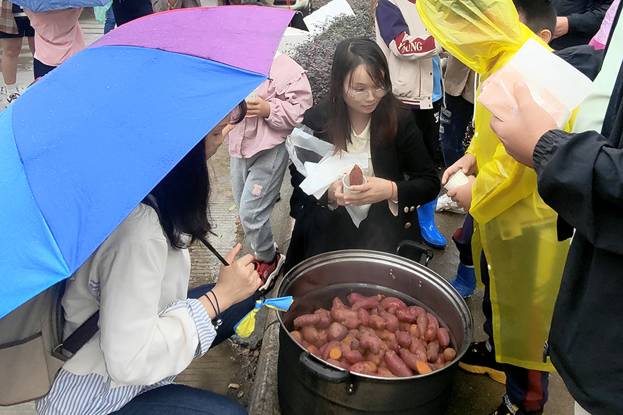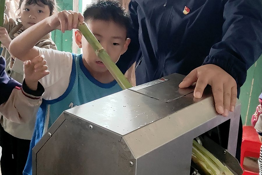 探索自然魅力,體驗秋收農(nóng)趣?;顒蝇F(xiàn)場,五通基地種植技術員首先向師生們介紹了青皮甘蔗的歷史典故以及紅薯、玉米等農(nóng)作物的種植要領和相關知識。隨后,師生們走進五通基地田間地頭,依次參觀了紅薯地、玉米地、青皮甘蔗地,學習了解各類農(nóng)作物的生長特征,并在五通基地工作人員的演示指導下,親身體驗挖紅薯、摘玉米、砍甘蔗、榨甘蔗汁等勞作過程,雖然天下著雨,但絲毫不影響師生們參與勞動體驗的心情。隨著工作人員將收獲的紅薯和玉米蒸煮成一鍋熱氣騰騰的美食端上餐桌,搭配上一杯杯現(xiàn)榨鮮甜甘蔗汁,師生們現(xiàn)場品嘗到自己親手采摘的勞動果實,他們紛紛點贊道:“真是太好吃了,感覺就是人間美味”。通過參加本次活動讓學生們進一步感受到秋實不負春華,收獲不負耕耘的深刻含義。