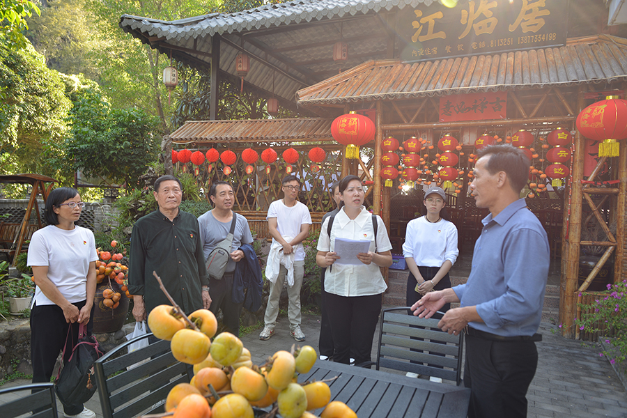 首先,全體黨員來到紅巖村“黨旗領航 電商服務”民宿點,認真聆聽了恭城紅巖村旅游協(xié)會會長、全國勞模、自治區(qū)第十一次黨代會代表朱建倫對紅巖村歷史文化和月柿特色農(nóng)產(chǎn)品發(fā)展模式進行講解,并與大家交流分享如何發(fā)展生態(tài)農(nóng)業(yè)旅游和鄉(xiāng)村振興示范村的建設情況及經(jīng)驗做法。