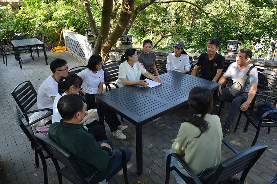 ▲黨員干部們認真聆聽朱建倫會長介紹紅巖村的歷史文化和特色產(chǎn)業(yè)發(fā)展模式